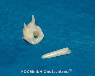 Divergierende Pulpenhöhlen für Stumpfaufbauten sind im tagtäglichen immer wieder ein Problem. Gerade aus Zirkon sind diese nur mit speziellen Lösungen herzustellen, eine Software für eine detailgenaue Erkennung im Gipsstumpf gibt es z.Zt. nicht. Wir stellen aus allen Materialien Stiftaufbauten her, ob an einem Stück oder mit getrennten Stiften. Das gleiche für Kohlefaser-PEEK.
